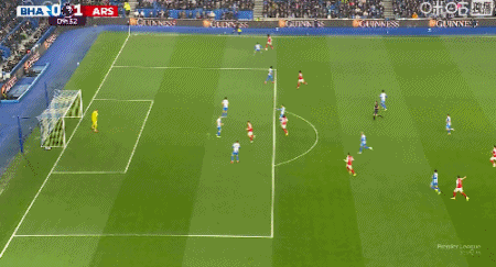 第9分钟,萨卡右路内切击中巴莱巴稍稍变线破门,阿森纳1-0布莱顿