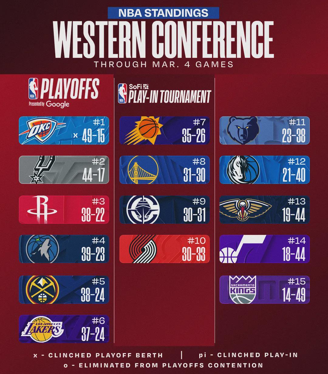 最后看看西部排名,你觉得哪两支球队能会师西决?