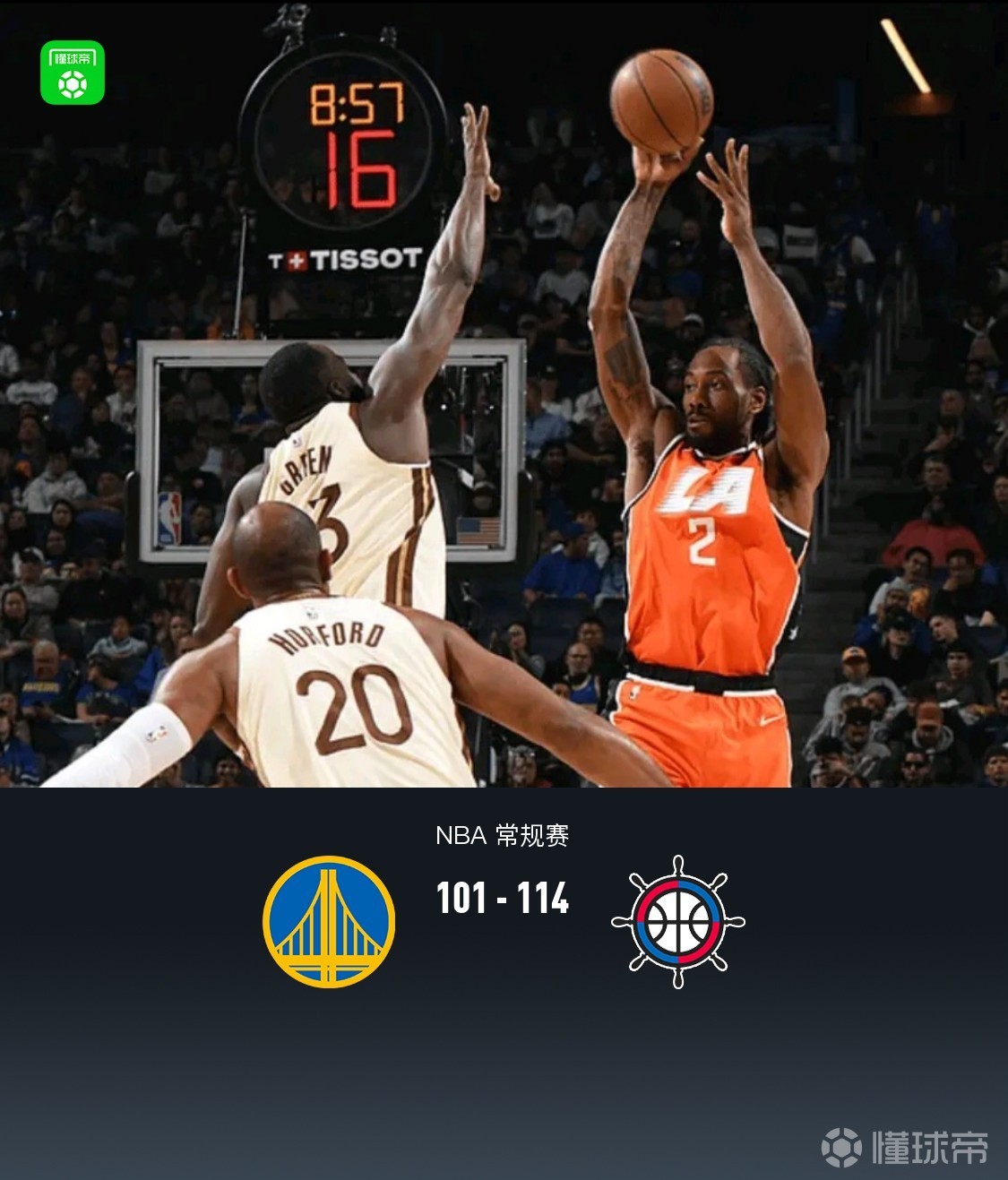 金州勇士波杰姆斯基22分7板3助,杰纳森-威廉姆斯18分2板2助;洛杉矶快船伦纳德23分8板4助,马图林17分7板。