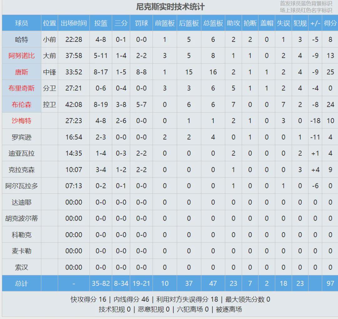 湖人反超掘金,排名升至西部第五位。最后看看湖人和尼克斯的比赛数据,说说你的感受: