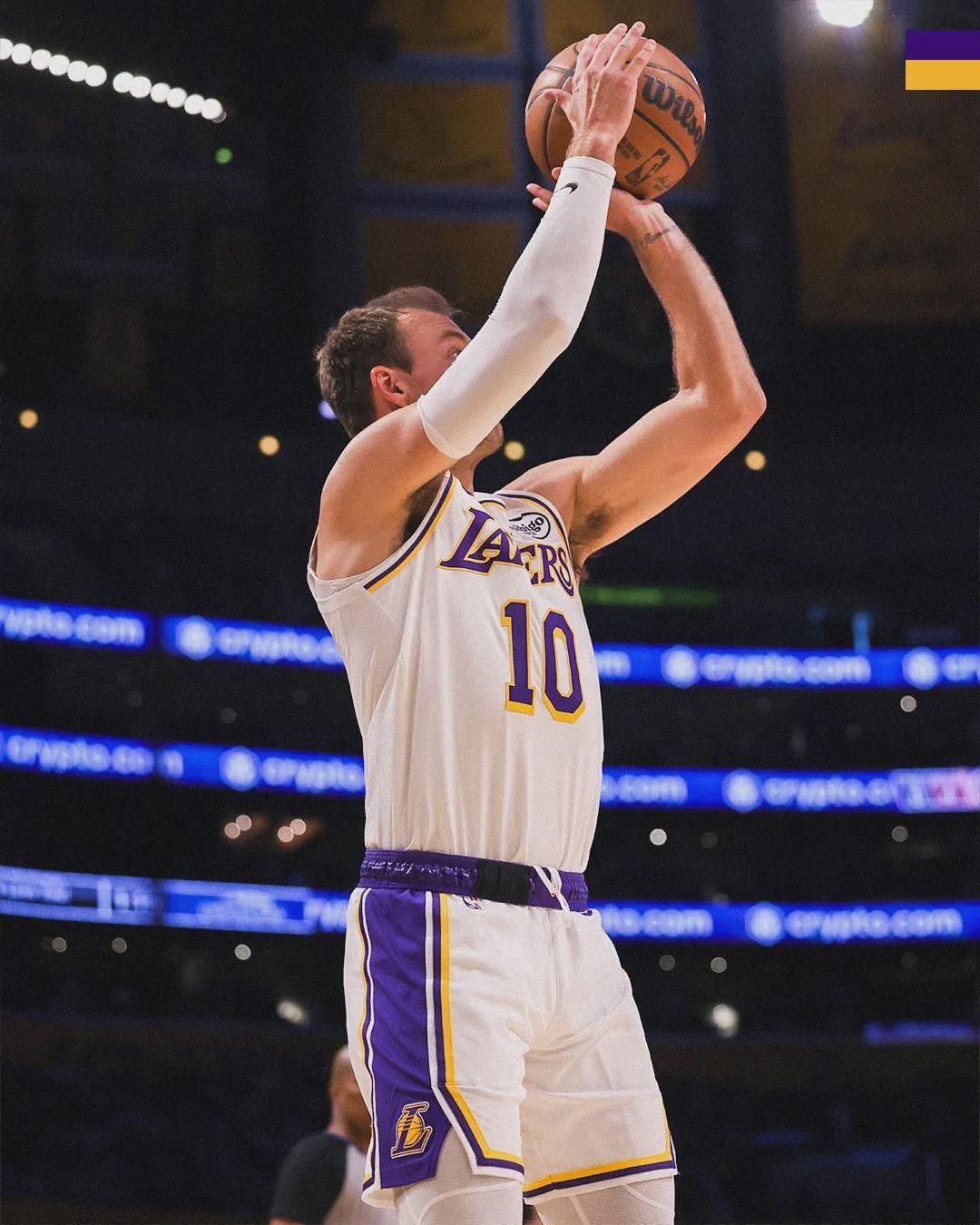 里夫斯16投8中,三分6中3,罚球7中6,拿到25分4篮板5助攻3抢断1盖帽,正负值+5。湖人新援肯纳德三分7中3,拿到12分2板1助1断。自从加盟湖人,肯纳德三分球合计47中24,三分命中率高达51.1%,你就说香不香吧?