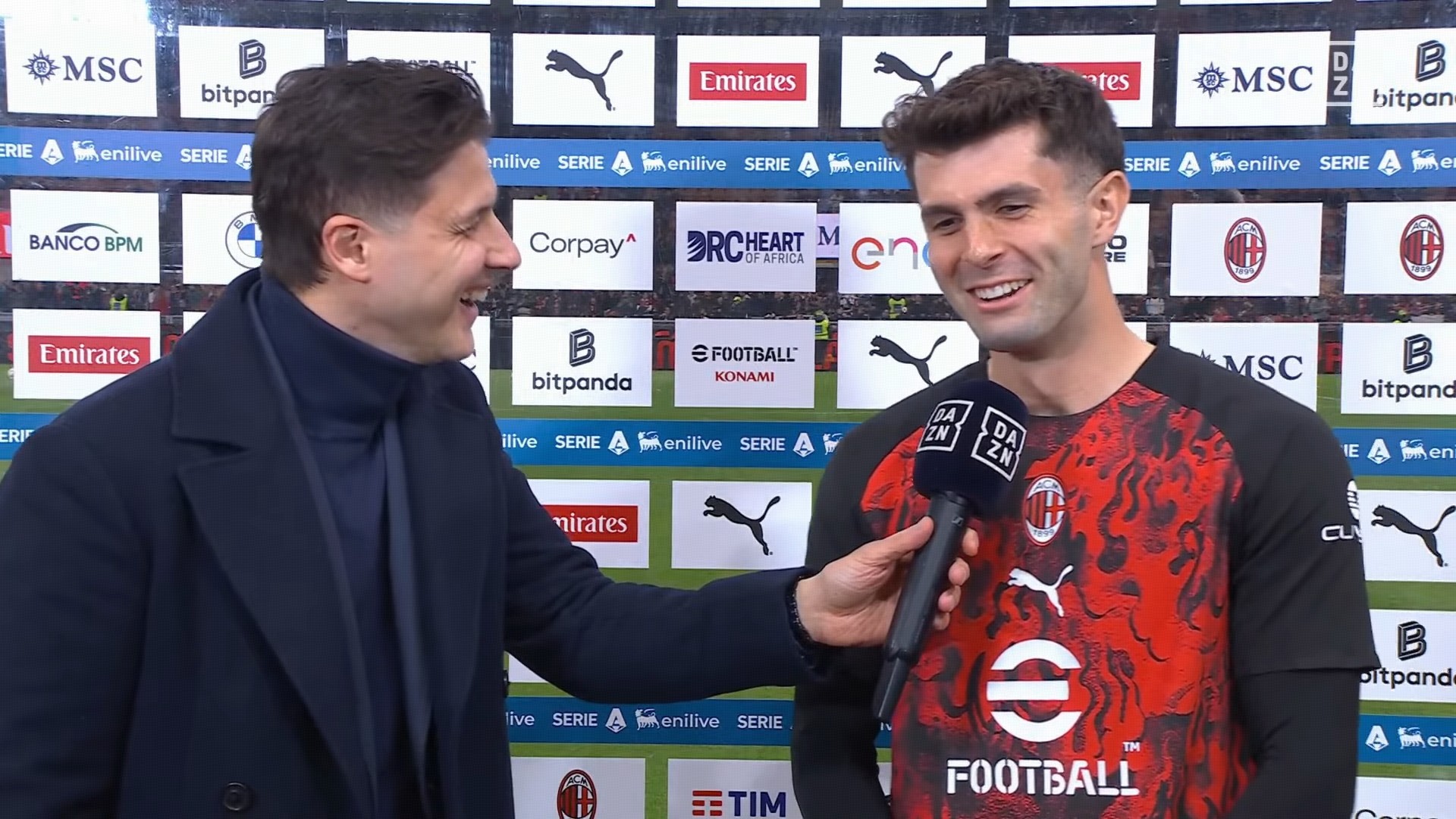 米兰在意甲第28轮主场迎战国际米兰的米兰德比即将开始,普利希奇在赛前接受了DAZN的采访。
