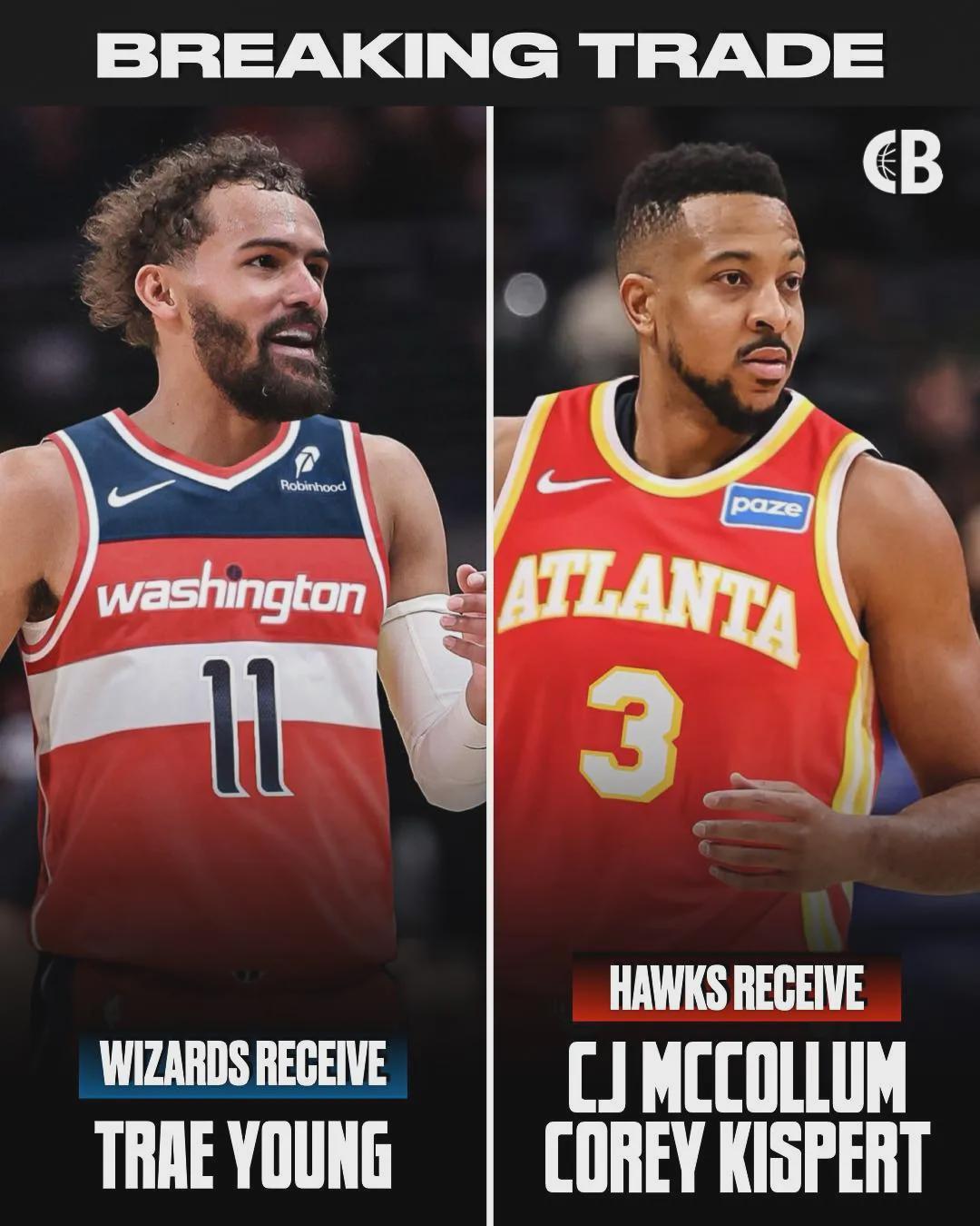 今年1月8日,奇才将CJ-麦科勒姆和基斯珀特送到老鹰,2换1交易得到特雷杨。2月5日,奇才又送出米德尔顿、AJ-约翰逊、布兰纳姆、马文-巴格利、2个首轮签和3个次轮签,9换4交易得到浓眉、杰登-哈迪、拉塞尔和埃克萨姆。